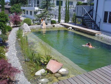 Im Unterschied zum Pool wird das Wasser darin von Pflanzen gereinigt, die am Ufer oder in einem separaten Becken wachsen.